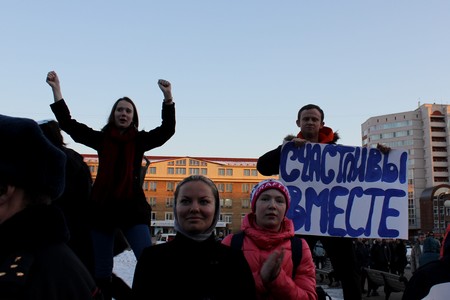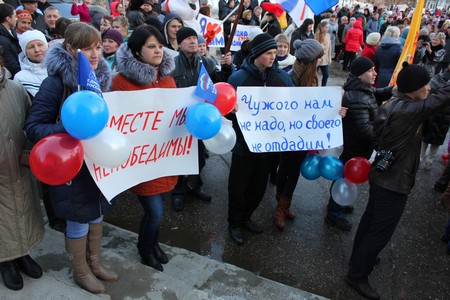 В Сыктывкаре 18 марта на Театральной площади состоялся митинг, посвященный году со дня присоединения Крыма к России. Корреспондент «КомиОнлайна» послушал патриотичные призывы его участников и расспросил горожан, почему они пришли на это мероприятие и что им принесло появление на карте еще одного российского региона.