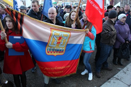 После того как заканчивалась одна из композиций, к микрофонам подходили общественники и рассказывали, как здорово, что Крым наш. Председатель движения ветеранов Афганистана Александр Пасечник напомнил, что прошел ровно год с того момента, как Крым вернулся «домой». Еще один представитель афганцев Юрий Белявский подробнее описал свой взгляд на недавние события: «Мы собрались по вопросу, который имеет жизненно важное историческое значение. Крым – снова Россия. Крым – это древний Херсонес, где принял крещение святой князь Владимир, чей духовный подвиг определил общую культурную и цивилизационную основу русского мира. Крым – это и Севастополь. Город-герой, город-легенда, родина русского черноморского флота, - зачитал он и перешел к нашему времени. – За годы самостийности в Украине менялись президенты, премьеры, депутаты Рады. Но не менялось их отношение к народу: они дрались между собой за полномочия, активы и финансовые потоки».