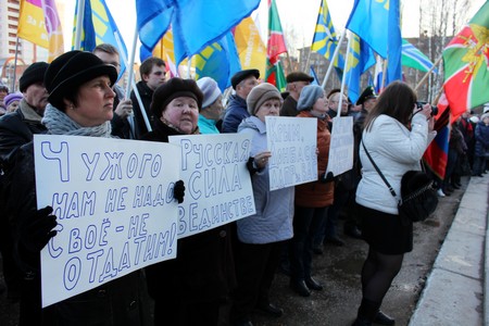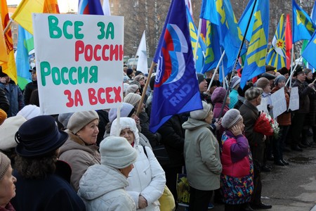 Цепочку из однотипных ответов прервала Елена, работающая в одном из бюджетных учреждений Сыктывкара. Услышав вопросы корреспондента, она поинтересовалась – отвечать честно, или «как надо»: «Мы пришли сюда, потому что входим в актив предприятия. Так как весь коллектив не может прийти, на нас лежит обязанность, прописанная в должностных инструкциях, посещать подобные встречи. Нас прямо так не посылали сюда, но утром недвусмысленно напомнили о митинге. А что касается изменений, которые я ощутила от присоединения Крыма, то все они негативные. Зарплата уменьшается, цены растут. В общем, ничего хорошего», — заключила она.