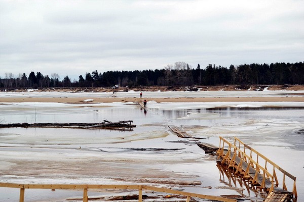 Весной лед тает, река угрожает полыньями отчаянным пешеходам, а потом разливается, подтапливая жилые дома. Когда-то давно Вычегда размыла старое кладбище на берегу и по воде плавали гробы, а часть из них торчала из обрыва, напоминая людям о смысле жизни. Кладбище пришлось переносить.