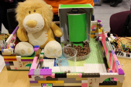 Школьники постарше, учащиеся в лицее при Сыктывкарском госуниверситете, разработали устройство для умного дома. Это самопополняющаяся кормушка для домашних животных.