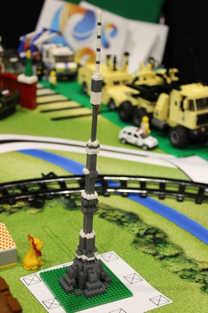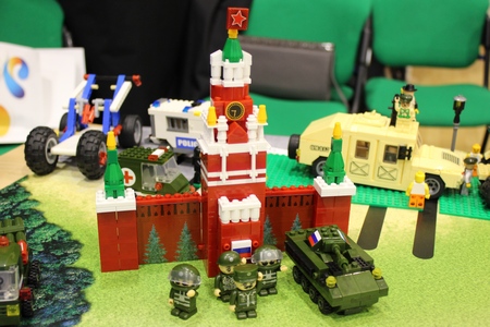 Тут был и Кремль с военными машинами, и Останкинская башня, и железнодорожные рельсы с поездом, ездящим по ним, и ракеты.