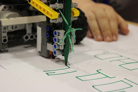 По периметру площадки разместились проекты школьников и их руководителей. Полезность и разнообразие созданных роботов поражали. Первоклассник Денис рассказал, что он вместе с братом создал робота-умника, который помогает выучить правильное написание словарных слов. Сначала братья сами на бумаге пишут сложные слова, затем их пишет робот, после оба варианта сверяются и дети узнают, где допустили ошибку.