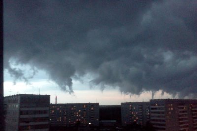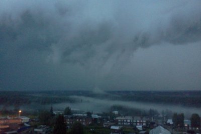 Во время ночной грозы возле сыктывкарского поселка Нижний Чов в кучево-дождевом облаке образовался атмосферный вихрь.