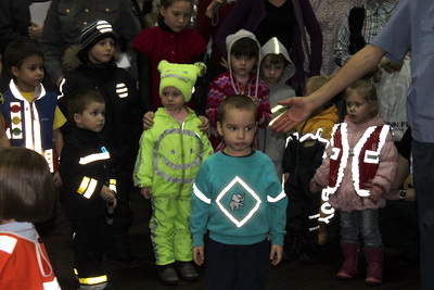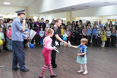Представители страховой компании наградили участников конкурса рисунков, а сотрудники ГИБДД после небольшой лекции вручили призы победителям городского конкурса «Заботливая мама» - награды получили как дети, так и коллективные работы воспитанников городских садиков.