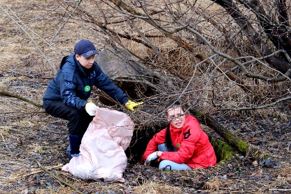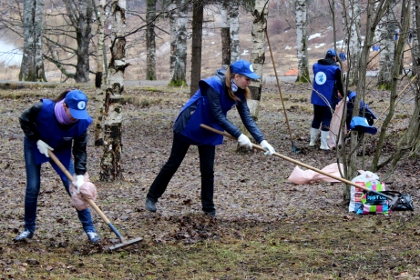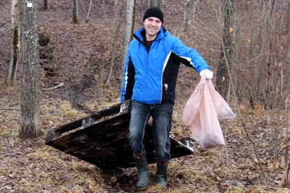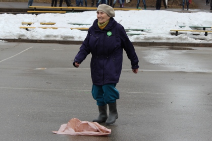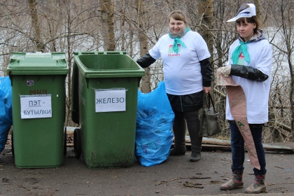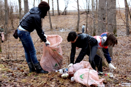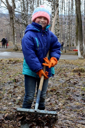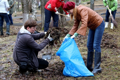 В это время по всему парку уже разбрелись горожане с мусорными пакетами и граблями. Однако их ждало некоторое разочарование — убирать было практически нечего: асфальтовые дорожки были чисты, в немногочисленных кустах изредка попадались фрагменты бутылок и пакетов, поэтому большинству участников акции пришлось ограничиться сбором прошлогодней листвы. Зато этого добра между деревьев оказалось предостаточно: группе девушек понадобилось никак не меньше часа, чтобы полностью вычистить территорию неподалеку от стадиона.