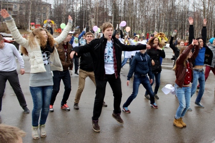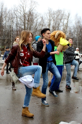 Перед тем, как начать масштабную уборку территории парка, организаторы акции решили размять жителей города зарядкой. Энергичную физкультминутку для нескольких десятков молодых людей провела тренер спортшколы «Северная Олимпия» Евгения Киселева. Среди упражняющихся была замечена до чрезвычайности активная пенсионерка, которая совершала повороты и приседания с не меньшим энтузиазмом, чем юные участники зарядки.