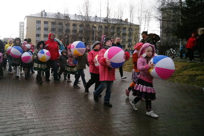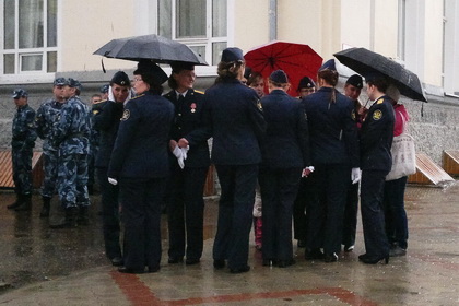 Репетировать маленьким артистам пришлось под накрапывающим дождем, который со временем только усиливался. В то время как дети, участвующие в параде, мокли под открытым небом, представители силовых структур прятались под козырьками близлежащих зданий. Едва из-за туч начало пробиваться солнце, из динамика прозвучало: «Погода над нами издевается. Не будем рисковать, сегодня мы вас отпускаем. Завтра в 09:30 все, как штык, должны прийти к колледжу культуры и отметиться: мы на базе». После этого большинство детей и наблюдавших за ними членов их семей спешно удалились. Хотя некоторые особо упорные артисты продолжили репетицию на площадке перед памятником Ленину.
