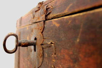 В туалете помимо винтажных сундуков и видавших виды шкафчиков стоит зеркало, вставленное в наличники для окон