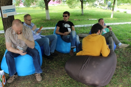 Очевидной была ориентация на молодое поколение, часто проводящее свое время в Интернете. Повсюду висели наклейки с QR-кодами, таблички с названиями всех возможных соцсетей и интернет-сообществ, всячески поощрялся постинг происходящего в Insagram, Twitter и Facebook. В тени дерева были разбросаны сиденья-пуфики для отдыха, велась онлайн-трансляция твиттер-ленты на большом экране, розетки лежали прямо на газоне, чтобы у каждого была возможность в любой момент заряжать гаджеты. В общем, масштаб и организация турнира впечатляли.