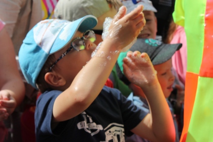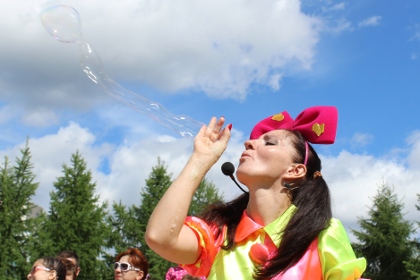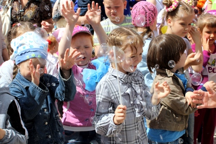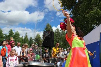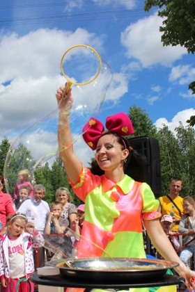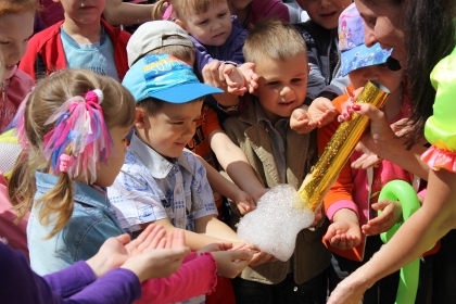 С помощью больших и маленьких пластмассовых кругов организаторы создавали огромные продолговатые пузыри, появление каждого из которых малышня сопровождала громкими криками восхищения.