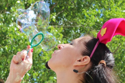 Но следующий пункт программы — мыльные пузыри — был под угрозой срыва: дул сильный порывистый ветер, который сводил все усилия организаторов на нет.