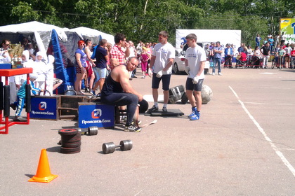Соревнования состояли из нескольких испытаний. Первое из них стало сюрпризом для участников — им предстояло одной рукой поднять на время над головой 90-килограммовую гирю. Некоторые участники к такому были не готовы, поэтому поставленную задачу выполняли с трудом.