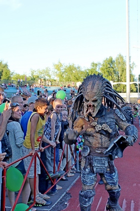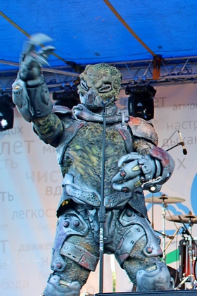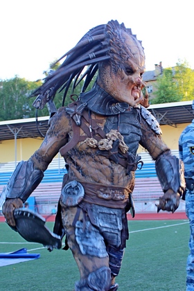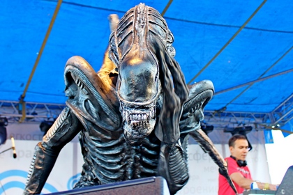 Через какое-то время на смену людям в пышных нарядах пришли невероятные существа: неожиданно у сцены появилось двое Чужих и противник инопланетных паразитов – Хищник. Люди восторженно встретили появление известных персонажей голливудского кинопрома, хотя по спине от их жуткого вида пробегали мурашки.