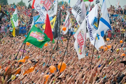 Получив на руки соответствующего цвета браслет, который обеспечивал нам беспрепятственное пребывание в фан-зоне, мы пошли ставить палатки. Палаточный лагерь на фестивале общий для обладателей как обычных, так и фан-билетов, а вот випы жили в специально огороженном месте. Супер-випов по желанию доставляли в находящуюся неподалеку гостиницу. Палатки можно было устанавливать в любом месте поля, но почему-то большая часть прибывших днем 5 июля предпочитала селиться около туалетов и проходных дорожек, что означало постоянную муку неприятными запахами и ни минуты тишины. Мы разбили лагерь как можно дальше от всего этого мракобесия, установив, как и многие, рядом с палаткой флаг. Это, кстати, почти обязательное условие. Так проще найти свое жилище в условиях того, что ландшафт все время меняется: ты можешь поселиться практически на пустой территории и отметить для себя какие-то подсказки, но через полчаса приезжают еще люди и, вернувшись, ты просто не узнаешь своего места. Но даже с флагом я умудрилась заблудиться и полтора часа бродила среди палаток, так как в сумерках все стяги одинаковые.