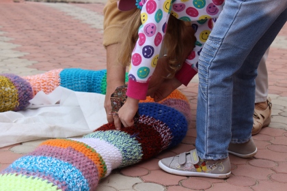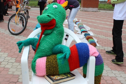 Периодически по пути попадались тематические площадки, например, книжно-библиотечная. Впервые она появилась еще в прошлом году, и главной ее целью было привлечь гуляющих к чтению. Однако на этот раз акцент был смещен в строну развлечений: эжвинцы могли померить подручными средствами огромного вязаного змея, покидаться в цель шишками или купить украшения. При беглом осмотре корреспондент «КомиОнлайна» книг не обнаружила. Поэтическая площадка и вовсе была пуста.