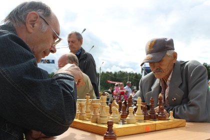 Еще один эпицентр гуляний находился на улице Славы в районе эжвинской администрации. Там была установлена сцена, где выступали танцоры и певцы, дети развлекались в спортивных играх, возрастные мужчины, задумавшись, сидели за шахматными столами, под белой полупрозрачной тканью виднелось большое кованое дерево.