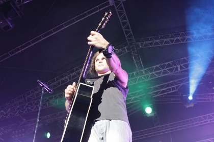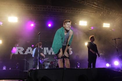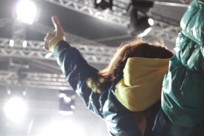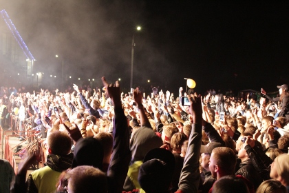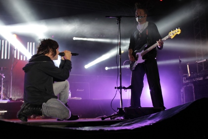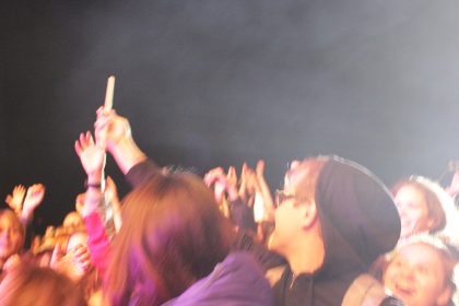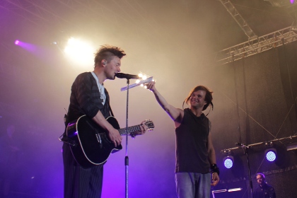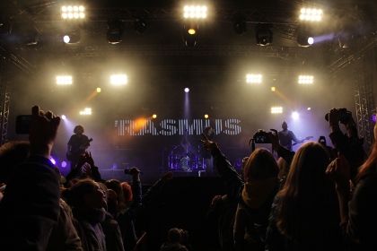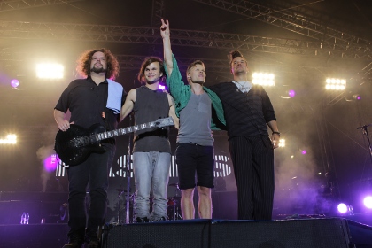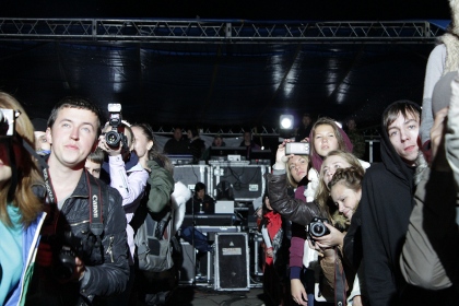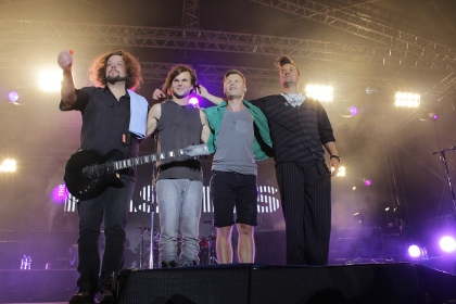 В финале концерта самые счастливые поклонники группы смогли побороться в толпе за полотенце и барабанные палочки, которые музыканты подарили им, бросив в толпу.
