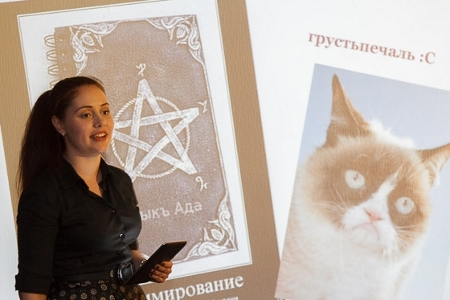 Девушка-программист Софья Мерц разъяснила зрителям, как, используя две казалось бы несовместимые дисциплины – программирование и лингвистику – можно создавать новые языки.