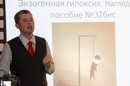 Впечатляющим было выступление медика Алексея Черных. Уже долгое время он исследует физиологию экстремальных состояний, в частности гипоксию. С довольно живодерческими интонациями А.Черных рассказал, почему человеку может не хватать кислорода.