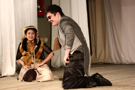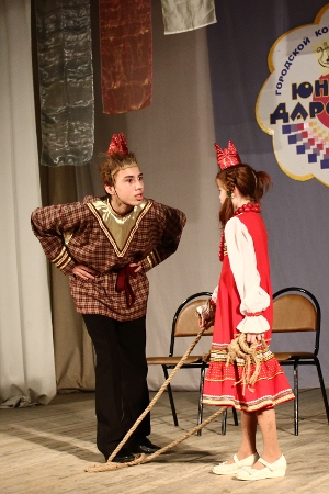 Затем с отрывком из спектакля «За двумя зайцами» выступили юные актеры центра дополнительного образования №25 «Радость». Школьникам с легкостью профессионалов удалось передать абсурдность и комедийность ситуации, описываемой в пьесе.