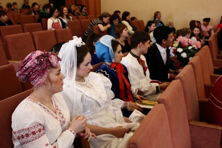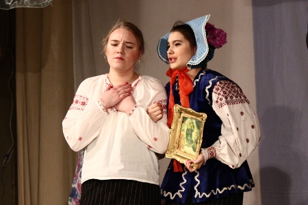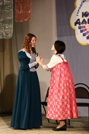 Следующими вышли на сцену ученицы гимназии имени А.Пушкина с отрывком спектакля «Во всех ты, душенька, нарядах хороша!» по повести «Барышня-крестьянка». Девушки были настолько органичными в своих образах, что буквально за три минуты смогли дать зрителю ощущение полноценного спектакля.