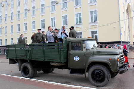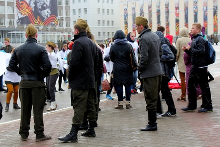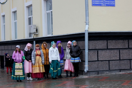 Комфортнее других себя чувствовали молодые люди, изображавшие солдат и одетые в плащ-палатки и каски, – обмундирование защищало их от пронизывающего ветра. Барышни в народных костюмах были вынуждены прятаться от бьющего в лицо снега за углом здания администрации главы региона.