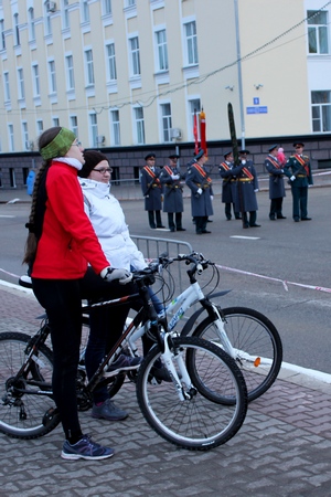Как всегда, репетиция парада привлекла внимание зрителей. Многие родители, пришедшие на прогулку с детьми, останавливались у ограждения и, перекрикивая ведущих, рассказывали малышам значение парада и грядущего праздника.