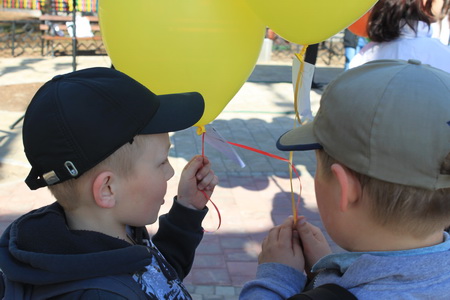 Любой из присутствующих на детской площадке мог написать пожелание на листке, привязать к шарику и запустить его в небо. Сделали это и А.Хуциев и И.Поздеев: директор Коми филиала пожелал процветания городу, градоначальник – процветания компании.