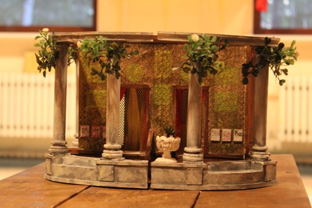 Пока шел спектакль, театральное действие не прекращалось и в других помещениях. По буфету, а затем и по купольному залу быстрым шагом перемешался мим, бережно прижимавший к себе гитару. Как только он видел кого-то из посетителей, то тут же устраивал им небольшую сценку. Так, приметив девушку, которая его фотографировала, он сделал вид, что следит за ней, а когда та послала ему воздушный поцелуй, мим картинно упал на колени, изображая молниеносно настигшую его влюбленность. Зрелище было очаровательное.