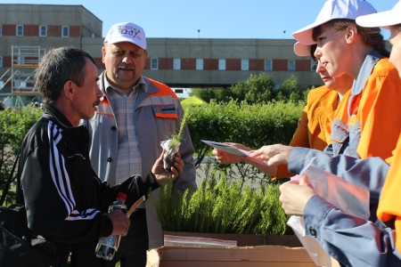 На «Экологической станции» сотрудникам выдавали по саженцу сосны в обмен на батарейки и ртутьсодержащие лампы, которые нужно утилизировать особым образом. Деревце можно было унести с собой и высадить на дачном участке или во дворе дома.