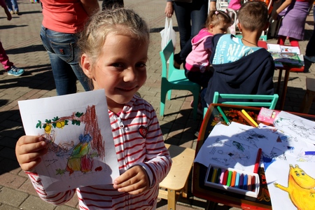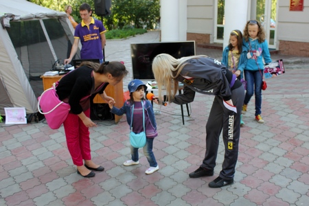 Ниже, у республиканского центра допобразования, работал молодежный проект «Зооэтика». Там, прогуливаясь, можно было выбрать кота из приюта, ознакомиться с информацией о защите животных на стендах и в буклетах, а также выиграть призы, выполнив нехитрые задания. Пока корреспондент находился неподалеку от этой площадки, дети выигрывали в основном пакеты для уборки продуктов жизнедеятельности домашних питомцев.