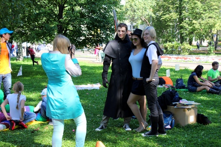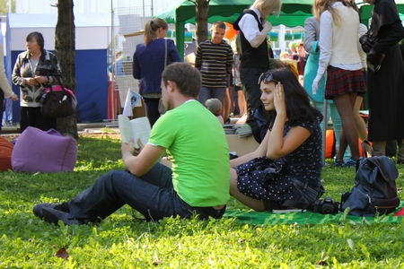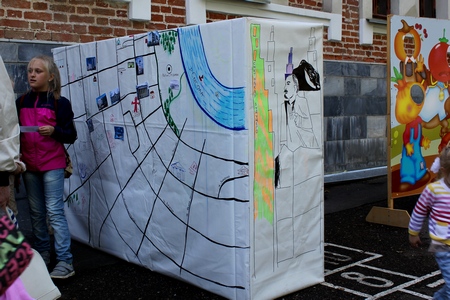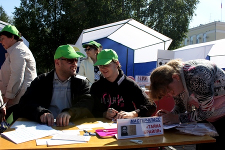 В сквере Стефановской площади развернулась большая литературно-игровая площадка. Там же в тени деревьев можно было полежать на газоне в обнимку с вязаными подушками или сфотографироваться, примерив на себя различные образы и костюмы.