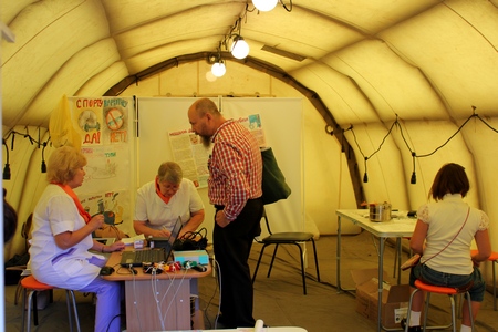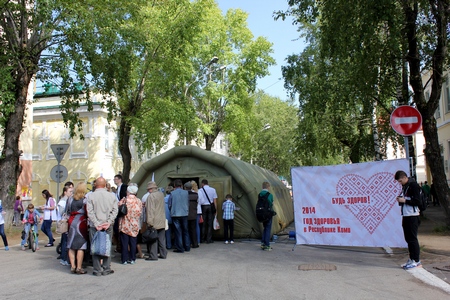 Между двумя зданиями Национального музея республики в палатках расположились центры здоровья для детей и взрослых. Они вызвали большой интерес — к входам выстроились длинные очереди.