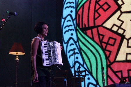 Мы не играем фольклор. Мы сочиняем свою музыку и называем ее этноэкстрим. Мы замешиваем этнические мелодии. Почему этнические? Потому что они у нас в крови. Различные колыбельные и народные песни. По-настоящему фольклорная композиция у нас всего одна. Это болгарская песня, сегодня мы ее исполним. Давайте лучше вы нам расскажете, что мы играем, а мы послушаем.