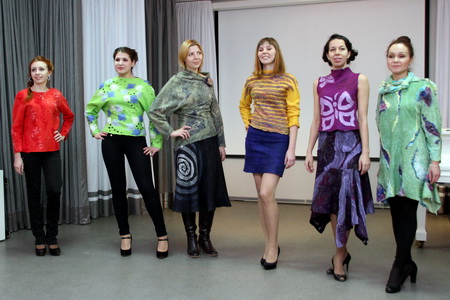 Дизайнер Галина Выставкина представила коллекцию одежды из войлока, которая была создана из шерсти и шелка в технике нунофелтинг.