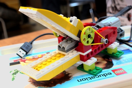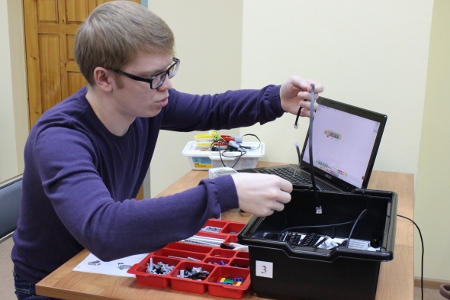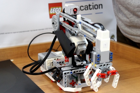 Сам процесс обучения, как оказалось, не очень-то и сложен. На каждом рабочем месте стоит ноутбук с установленными программами. Рядом находится набор конструкторов. В этот раз была задача собрать крокодила, который открывал бы пасть при приближении еды (на самом деле любого предмета), а потом быстро ее захлопывал.