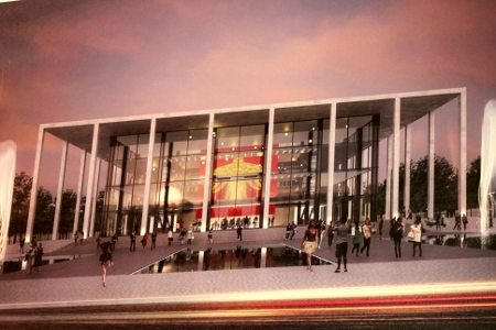 Что касается образа театра, то архитекторы решили совместить классический вид фасада, национальный колорит и современную отделку. Бежево-коричнево-белое здание с колоннами предлагают украсит орнаментом. Чтобы осовременить здание, специалисты включили в фасад больше стекла: большие окна, на которые предполагается нанести рисунок, например, тот же орнамент.