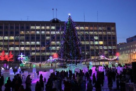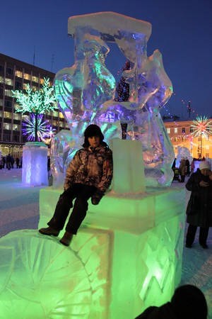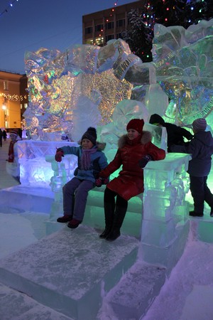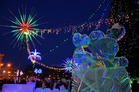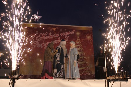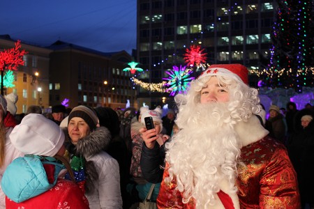 Несмотря на трудности процессия довольно скоро добралась до Стефановской площади, где Баба Яга и двое ее компаньонов уже развлекали скопившуюся публику, не позволяя ей замерзнуть, танцами. После того как они представили всех участников конкурса (несколько сыктывкарских школ, детских садов, домов культуры пригородных поселков, кинотеатр «Октябрь» и местный предприниматель), на сцену поднялись главные Дед Мороз и Снегурочка.