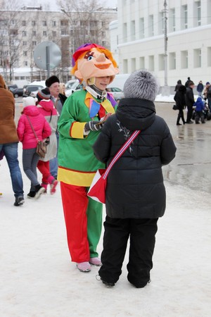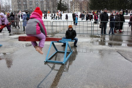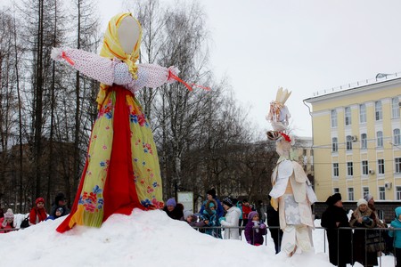 На Стефановской площади 22 февраля отгуляла широкая Масленица. Традиционное празднование ничем не отличалось от таких же праздников прошлых лет. Разве что вместо хрустящего снега под ногами хлюпали лужи. Корреспондент «КомиОнлайна», вооружившись фотоаппаратом, прогулялся по городу вместе с честным народом.