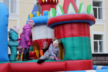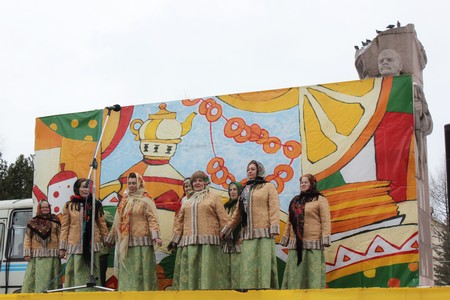 Развлекали людей, пришедших в этот день на главную площадь, привычными забавами: качели и карусель на человеческой тяге для самых маленьких, выступления различных коллективов и конкурсы частушек.