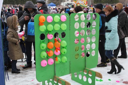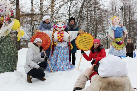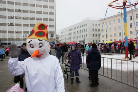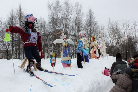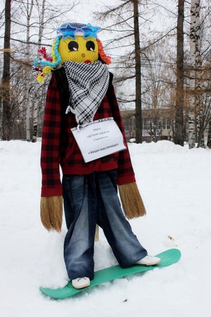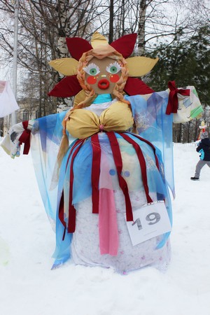 Вдоль площади стояли участницы конкурса – чучела Масленицы от различных организаций. В этом году помимо фантазий на тему ее внешности создатели чучел предположили, как выглядит Масленица, имеющая разные интересы. Так появились, например, спортивная и фэшн-Масленица.