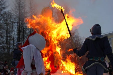 Финальной точкой действа, привлекшей внимание и детей и взрослых, стало театрализованное сожжение нескольких чучел Масленицы.