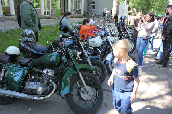 В тени стояли ряды мощных и не очень мотоциклов и под стать им брутальные мужчины.