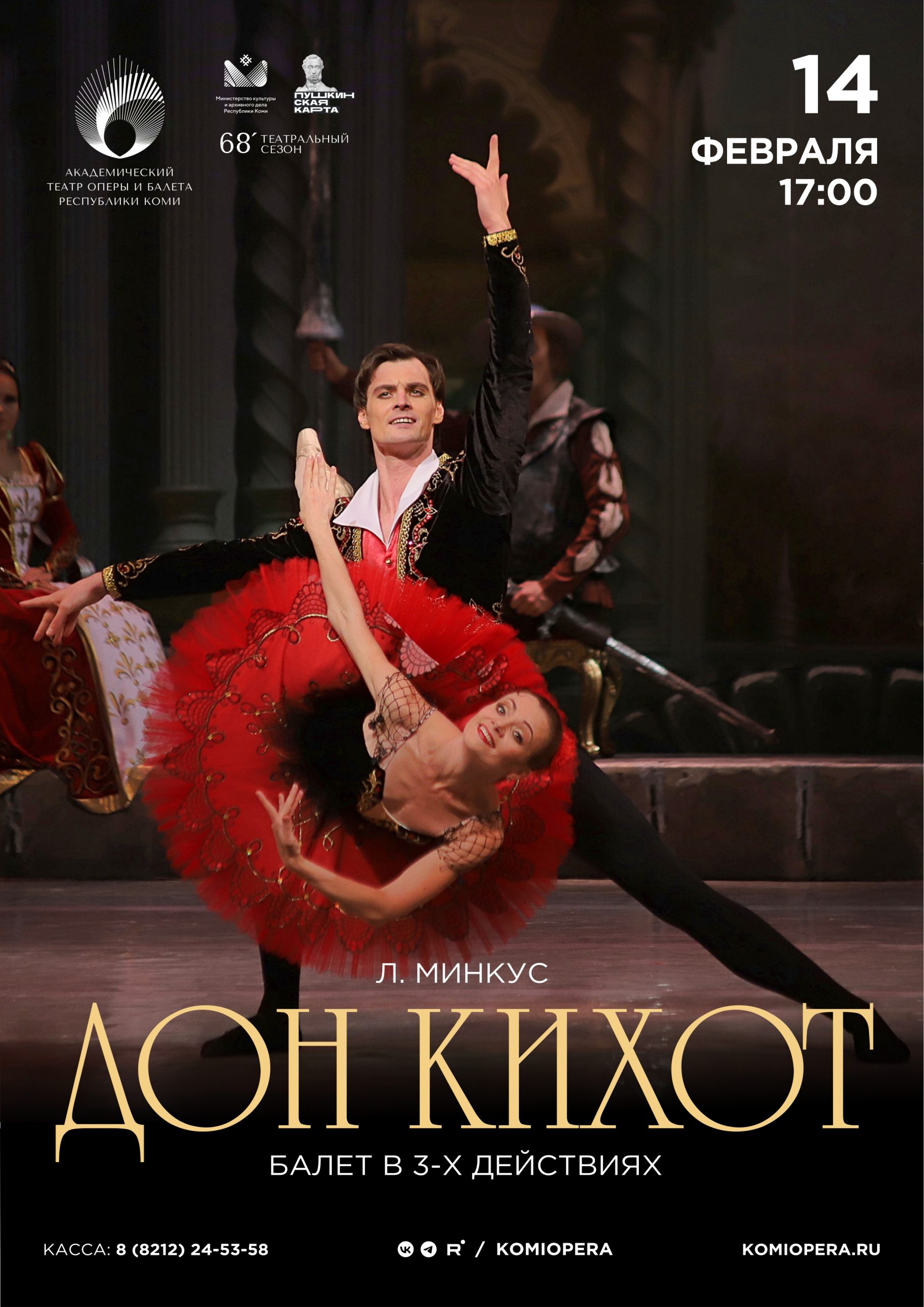 История Дон Кихота в балете – повод для яркого танцевального зрелища, где главные герои – молодые возлюбленные. Спектакль насыщен огромным количеством жизнерадостных и разнообразных танцев, наделён яркими сценическими образами.