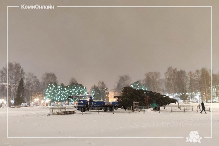 На Стефановской площади столицы Коми 25 ноября установили новогоднюю елку. Дерево привезли накануне из Сыктывдинского района. Высота ели – около 15 метров. Вскоре ее украсят.