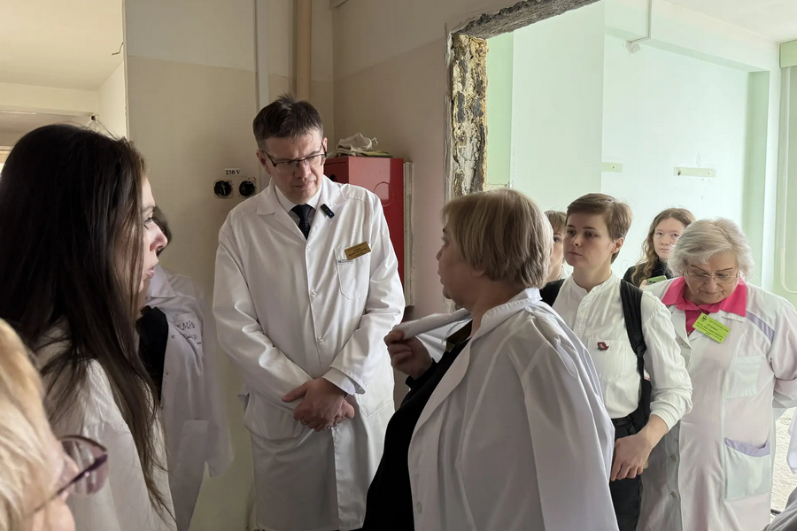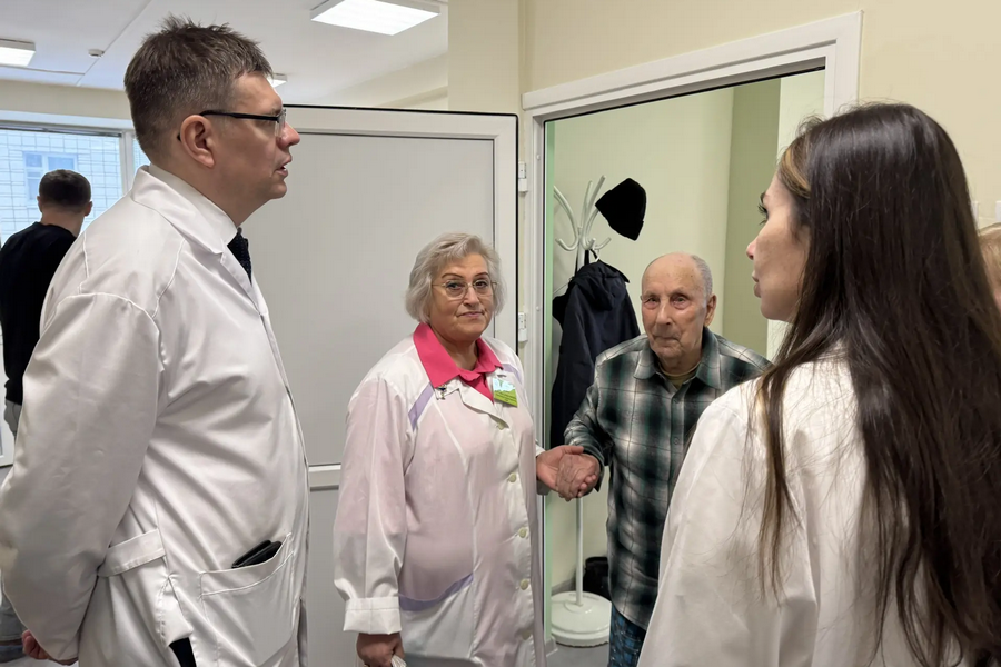 Главный врач медучреждения Виталий Ломов рассказал гостям, что после старта ремонта в ноябре 2025 года полностью преобразились входная группа и первый этаж с приемным покоем, где установили пандус для маломобильных людей, закупили новую мебель и оборудование. На входе в госпиталь, построенном в 1987 году, устранили высотные перепады, обеспечив беспрепятственный заезд людям с ограниченными возможностями. На крыльце учреждения остается только покрасить колонны и постелить антискользящее покрытие.