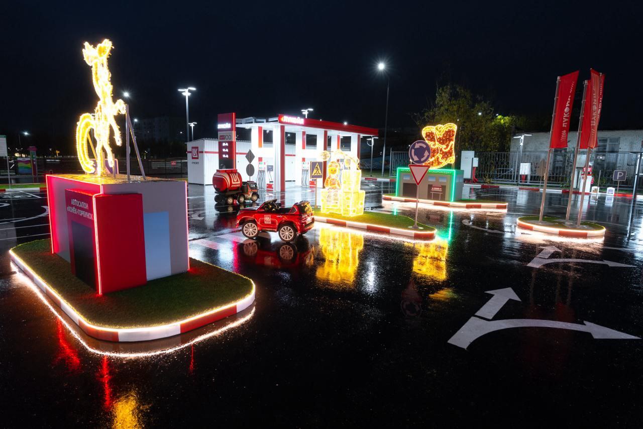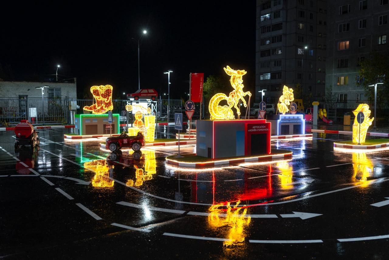 На территории парка уже смонтирована основная иллюминация: особое впечатление оставляет подсветка аттракциона для самых маленьких посетителей - мини-АЗС. Создатели «Мультидрома» - такое название получил обновленный парк, - постарались учесть предпочтения детей всех возрастов. И для тех, кому пока рано на большие горки, обустроили заправочную станцию в уменьшенных масштабах. Но правила дорожного движения и рассказывающие о них знаки - настоящие. И катаясь по территории АЗС в детском электромобиле, юные водители смогут изучать и закреплять ПДД.