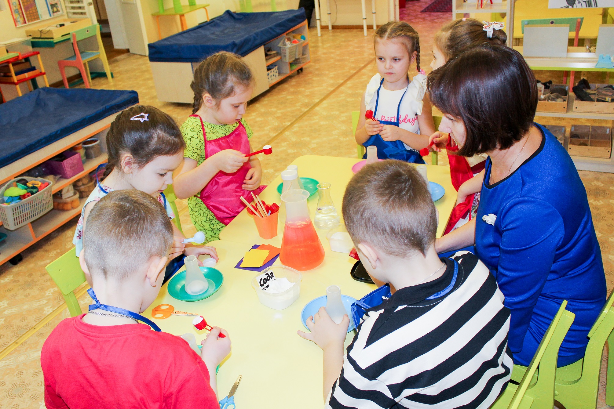 В рамках проекта «Хочу все знать!», поддержанного нефтяниками, дети с удовольствием проводят опыты, со знанием дела управляются с аппаратами и препаратами и искренне радуются эффектным результатам. Например, вулкану из в колбы, в которой соединили соду, лимонную кислоту, воду и краситель. Чем разнообразнее эксперименты, тем больше новой информации получает ребенок. И тем быстрее и полноценнее он развивается. Так под руководством воспитателей дети шаг за шагом познают окружающий мир и законы природы.