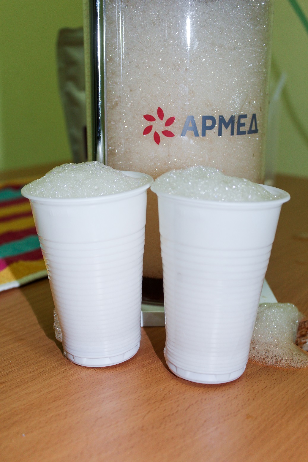 Для самих детей процесс приготовления коктейлей – уже увлекательное занятие: затаив дыхание, малыши наблюдают, как педагог заливает в миксер сок (из клубники, черноплодной рябины, смородины, яблок), добавляет кислородный ингредиент (напиток обогащается кислородом на 90-80%). Пару минут на взбивание, и готово.